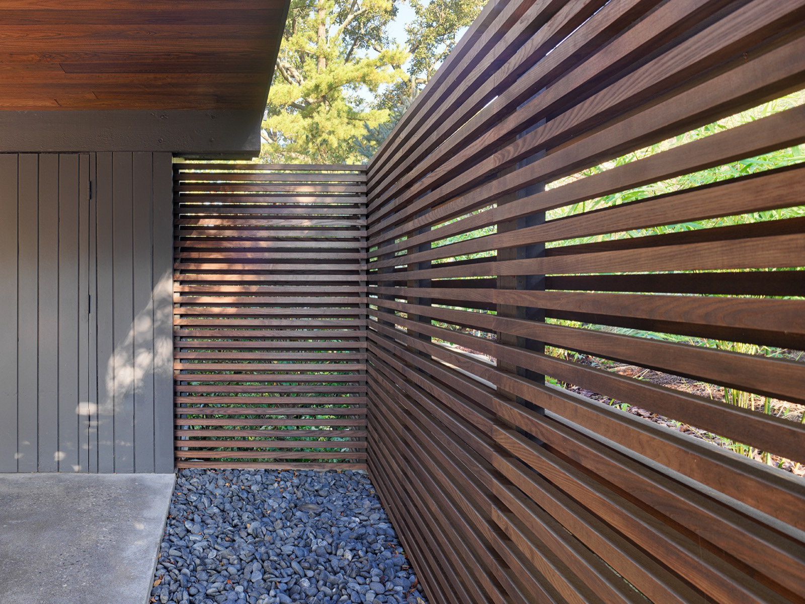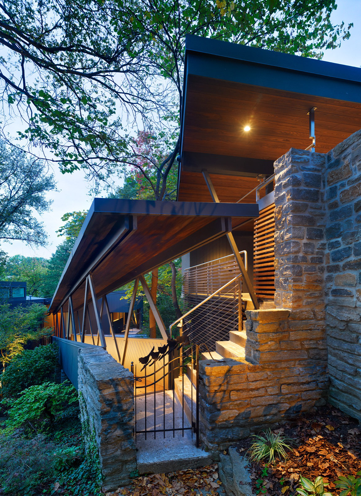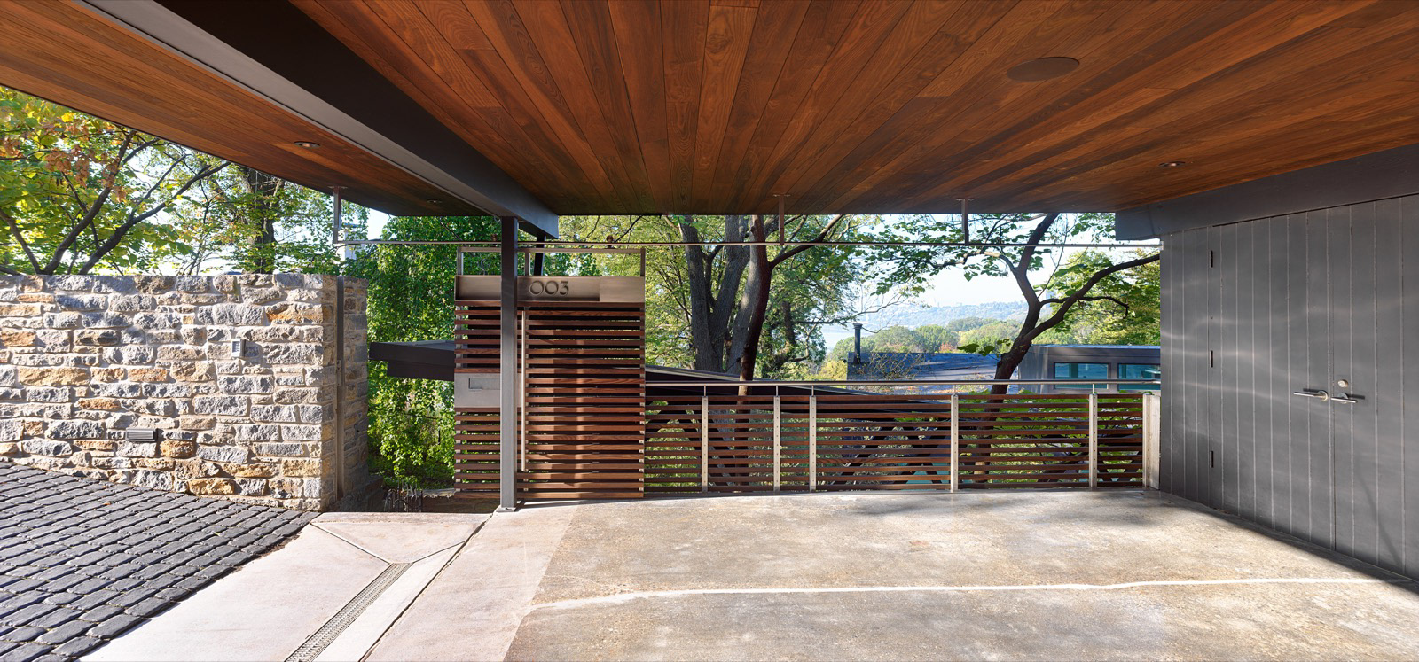 The renovation of the carport at this Cincinnati residence, originally designed by the Cincinnati architects Carl Strauss and Raymond Roush, was the final phase of an extensive renovation project meant to revive the spirit of this mid-century modern home. Recognizing that the carport was such an essential piece of the original composition, we felt it was important to preserve it rather than find an alternative means for accommodating a car on the site.