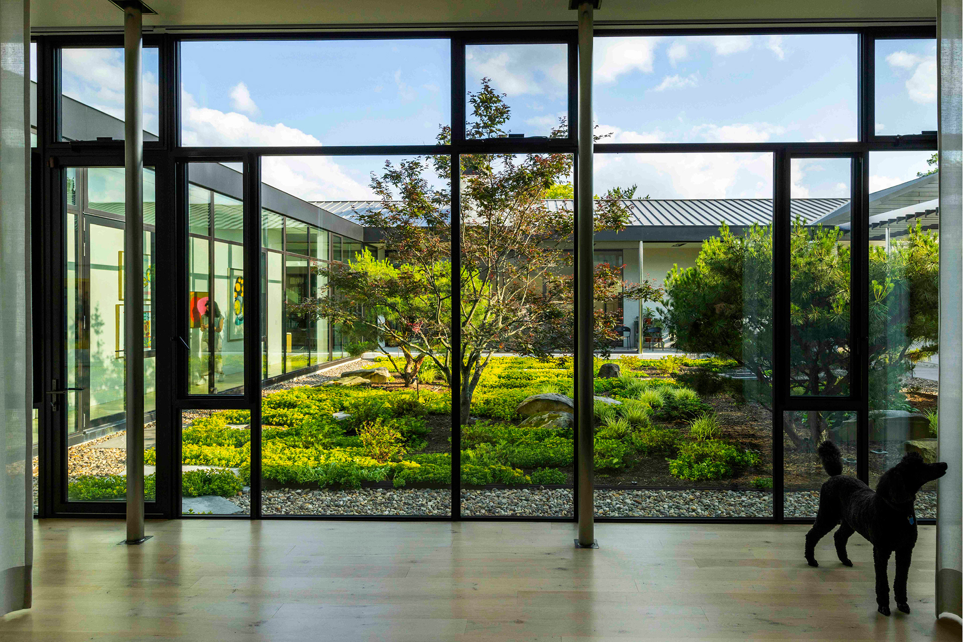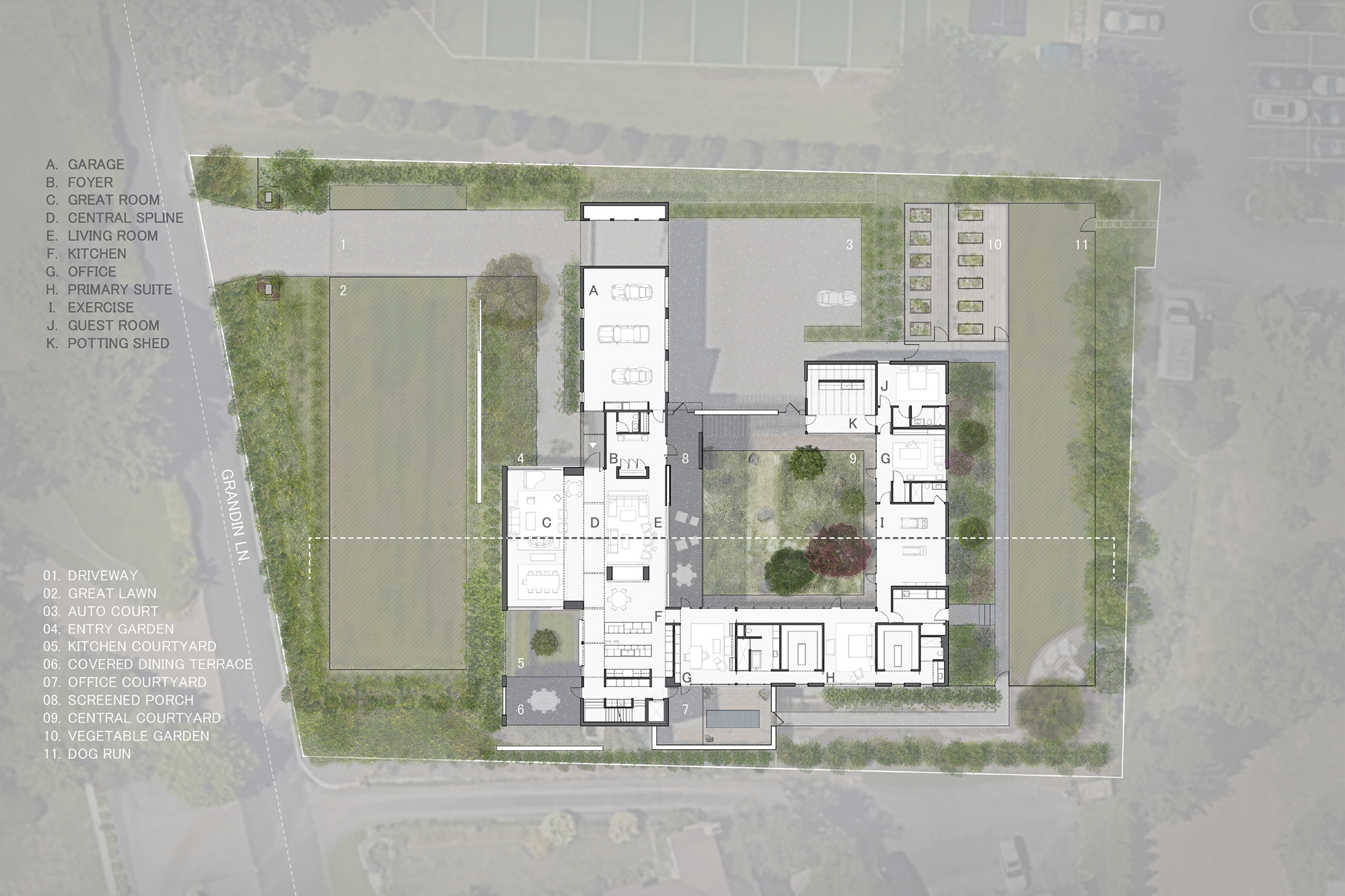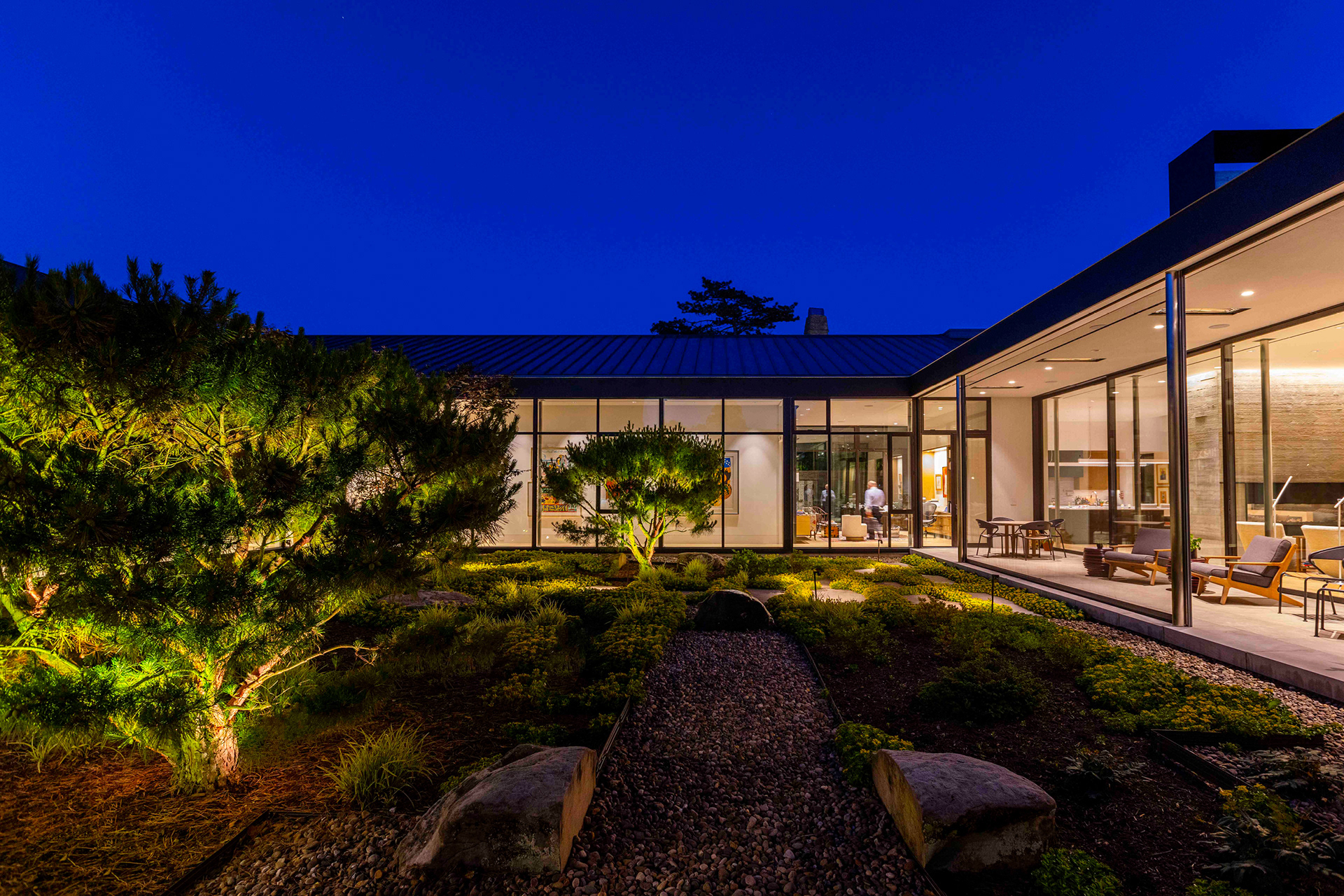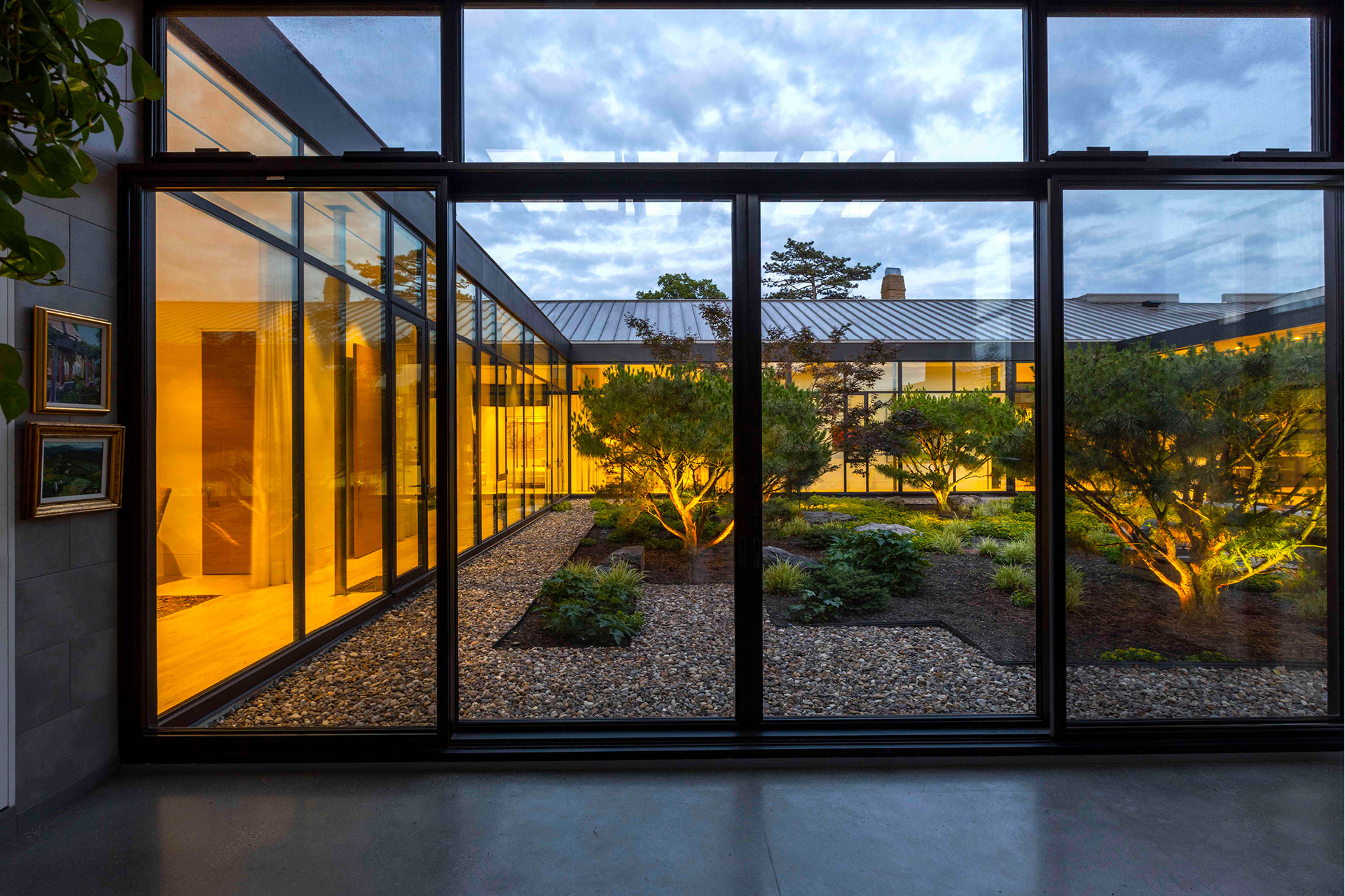 Bounded by a series of yards, gardens, and courts, the central courtyard anchors the light-filled home that at any given moment lends to the sense of experiencing the whole house all at once.
