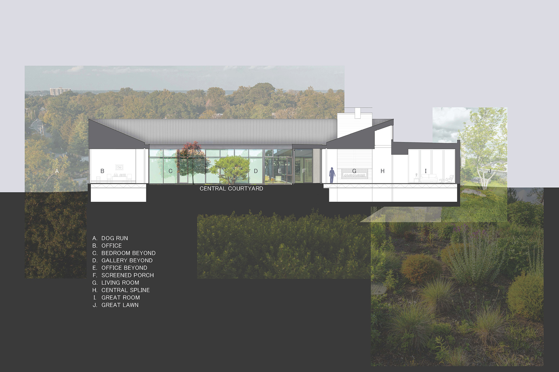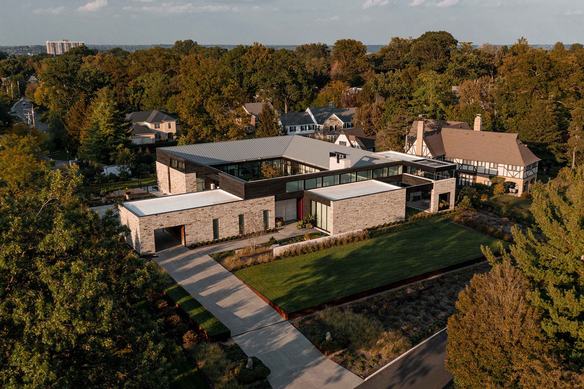 The homeowners, with some measure of seasonal affective disorder and a love and passion for gardening, left their longtime Tudor-style home and purchased a lot in an adjacent neighborhood, with the self-described ‘audacity’ to design a modern home full of light. Private people by nature, the site was ‘backward’ in that the highly desired natural light from the south was in opposition to the mandatory privacy from the street, which is located at the southern edge of the site. Frequent hosts to philanthropic events, the home also needed to be inviting and openable to live as a home for two yet adaptable to host two hundred.
