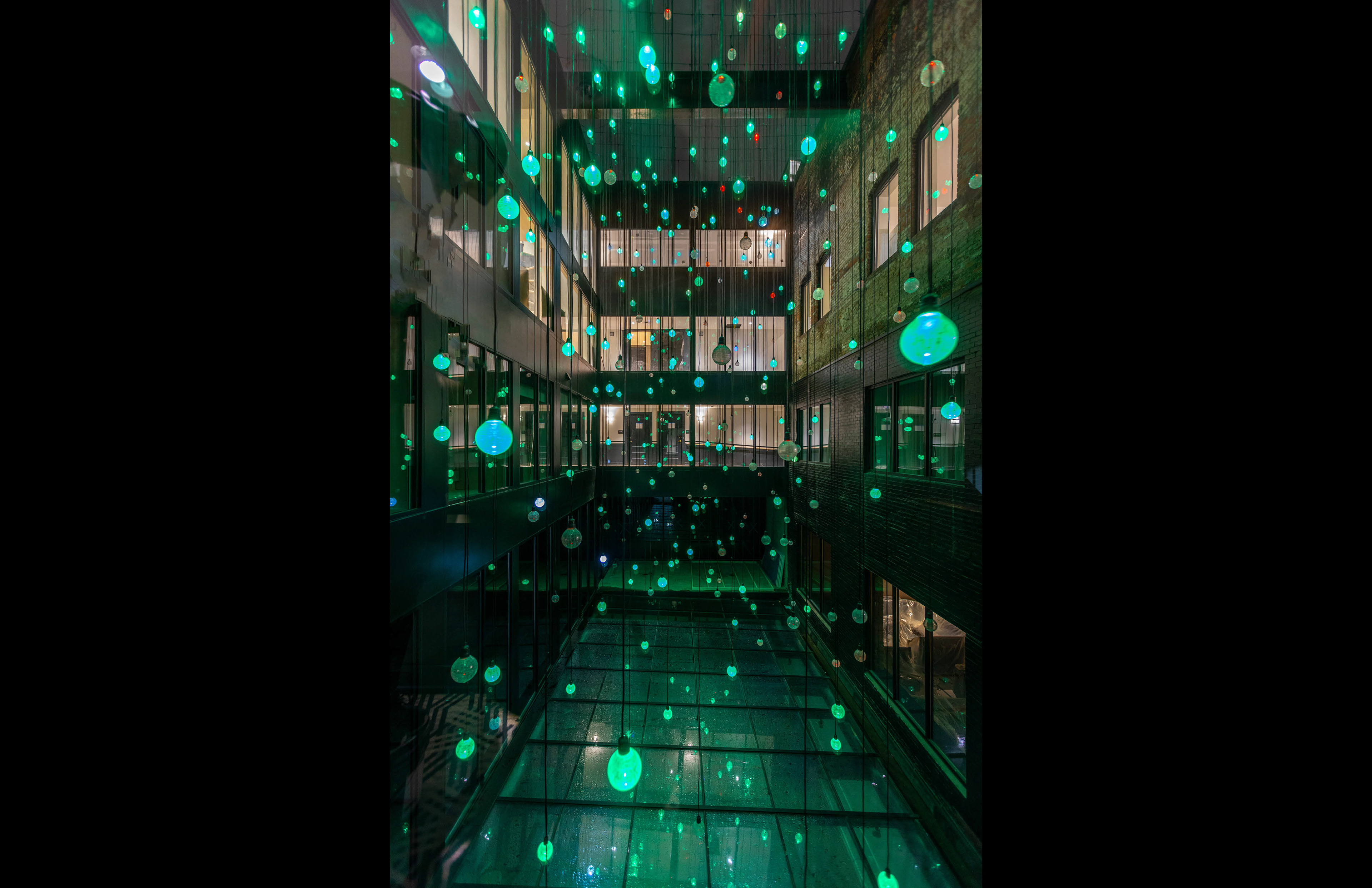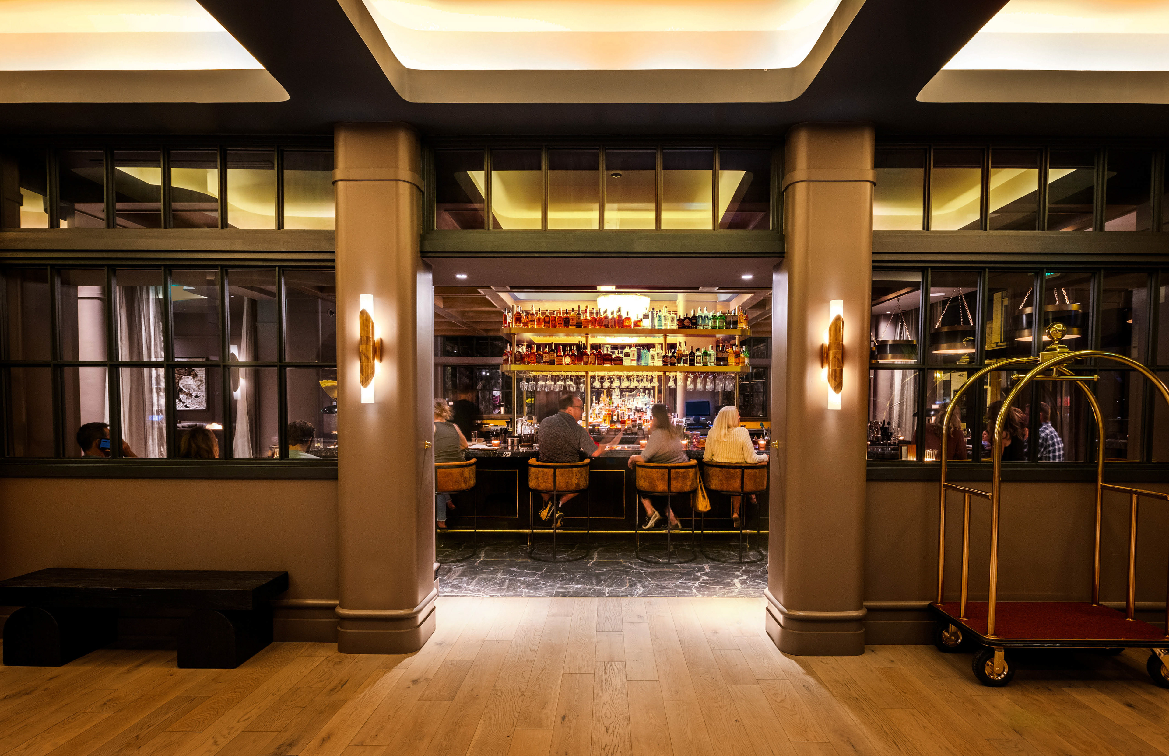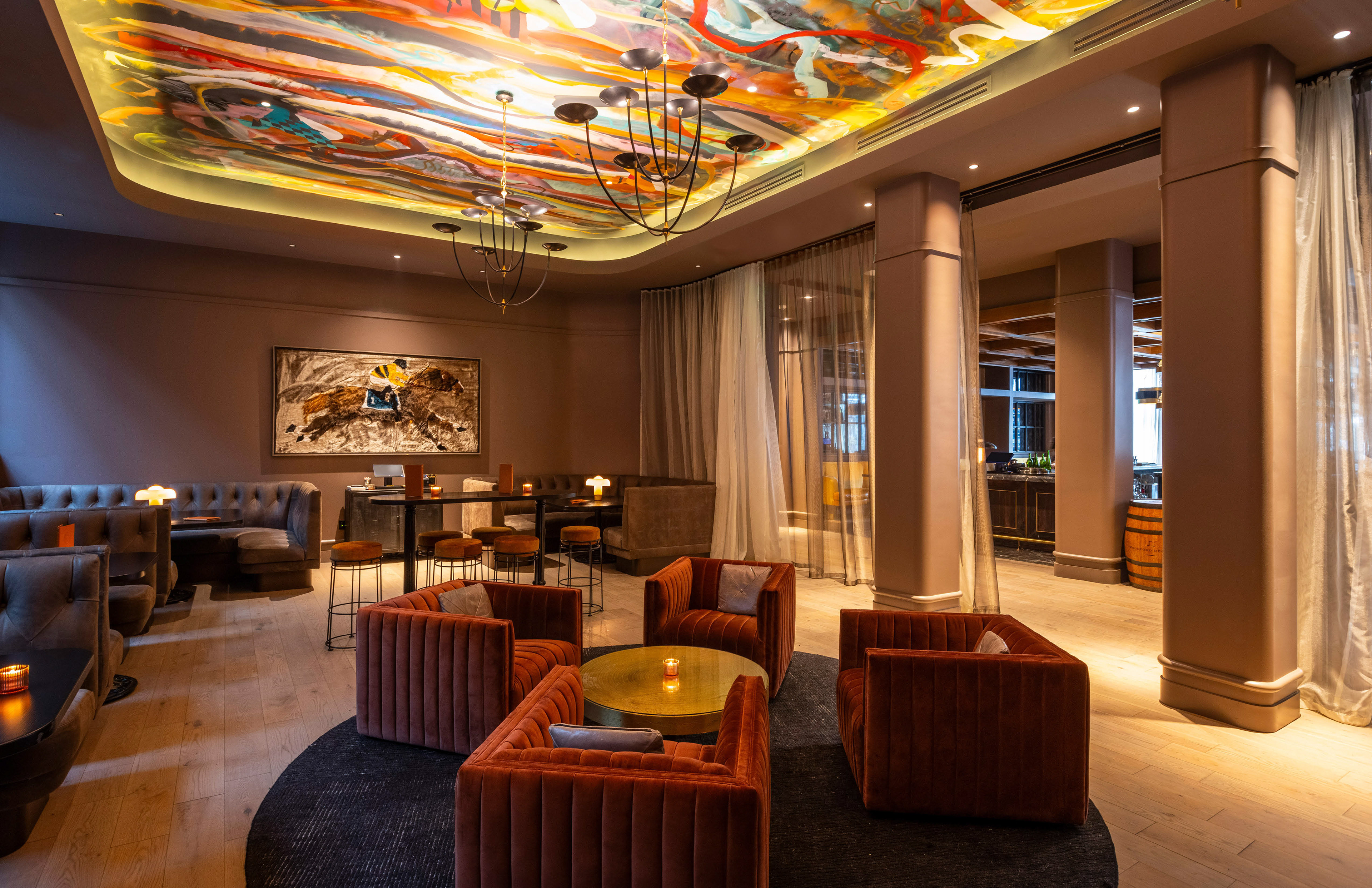 Ascending to the suite-style hotel above, the lobby floor is activated by the pulse of the bar below. The transition is seamless, orchestrated by the architectural grace of an internal lightwell, which carries the vivacity of the social room upwards by illuminating the suites above with active lighting.