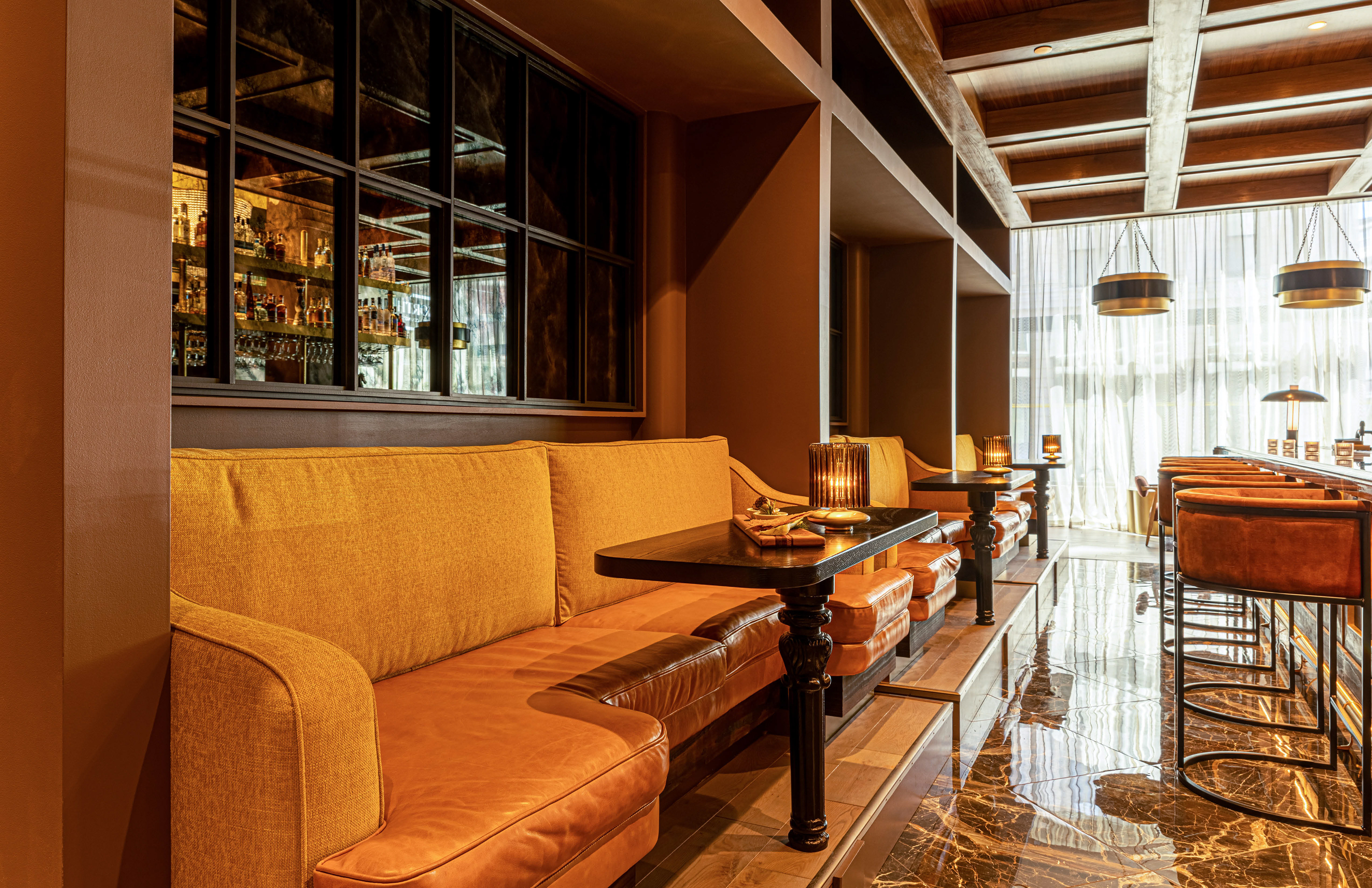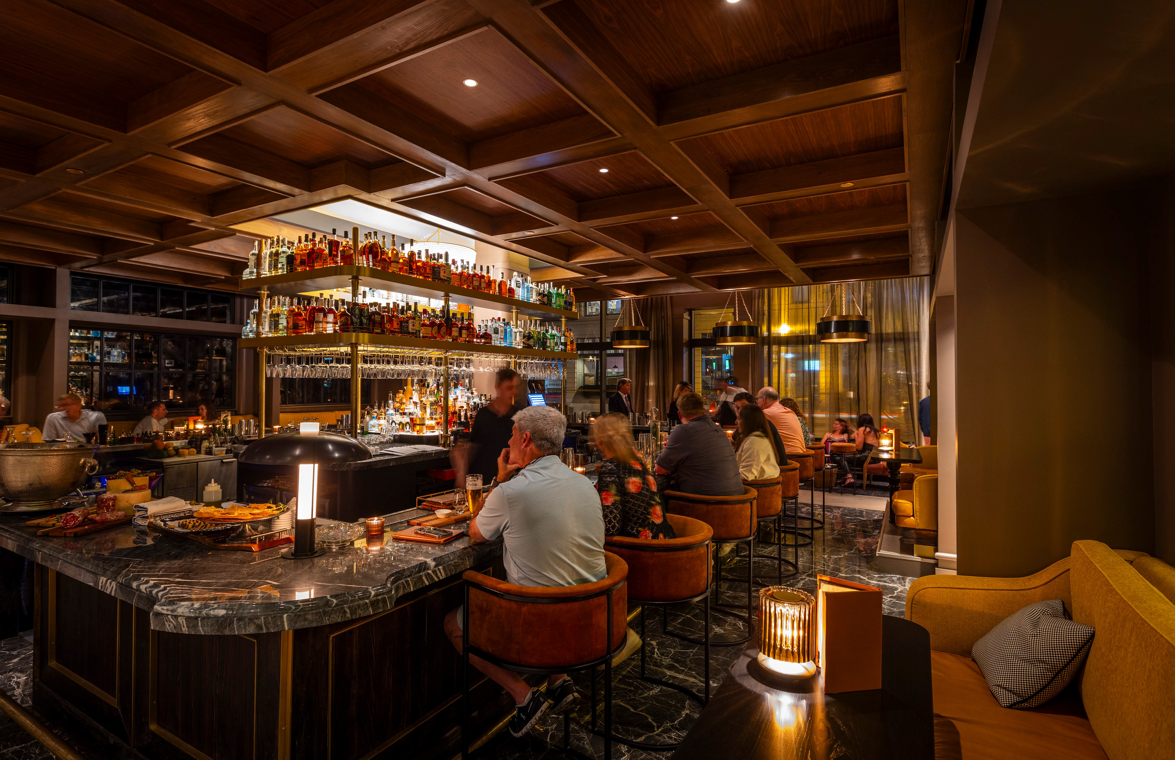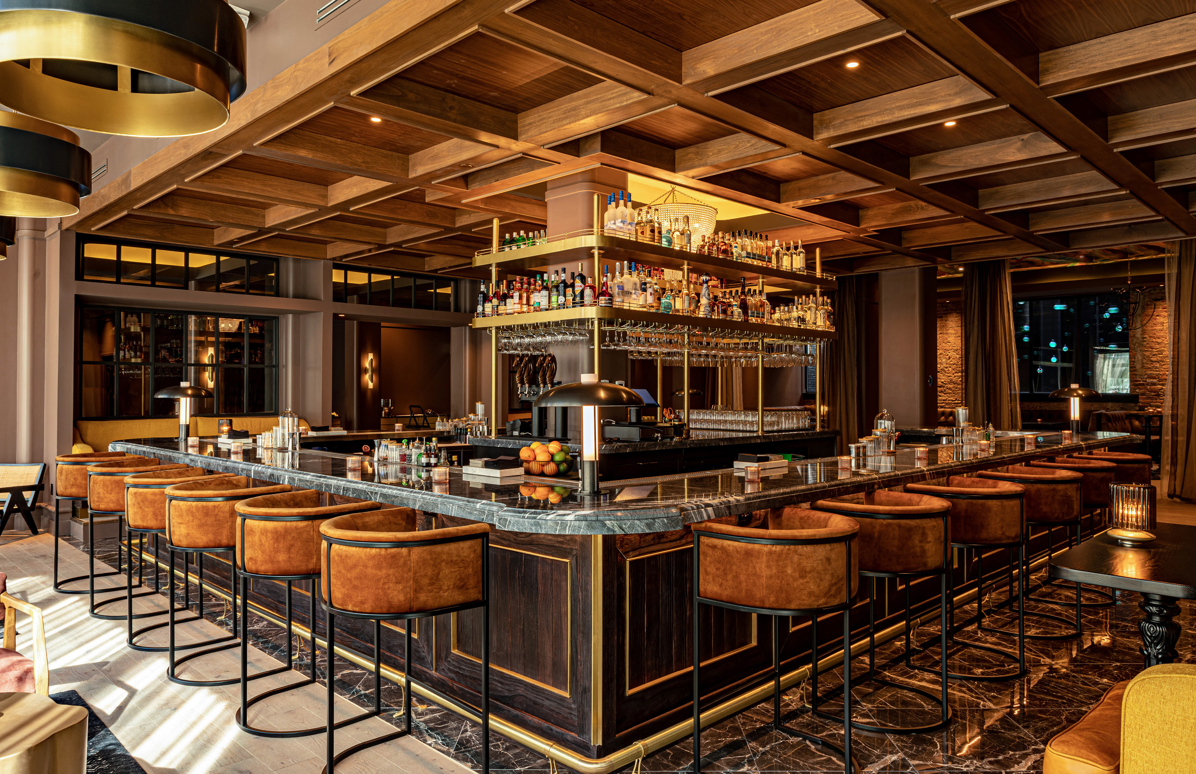 Every detail within this meticulously curated space is designed to evoke a sense of belonging and to stimulate intellectual discourse. The bar itself is a testament to craftsmanship, with its meticulous layering of materials and balance between form and function. Knowledge stands as an embodiment of the convergence of old-world charm and contemporary flair.