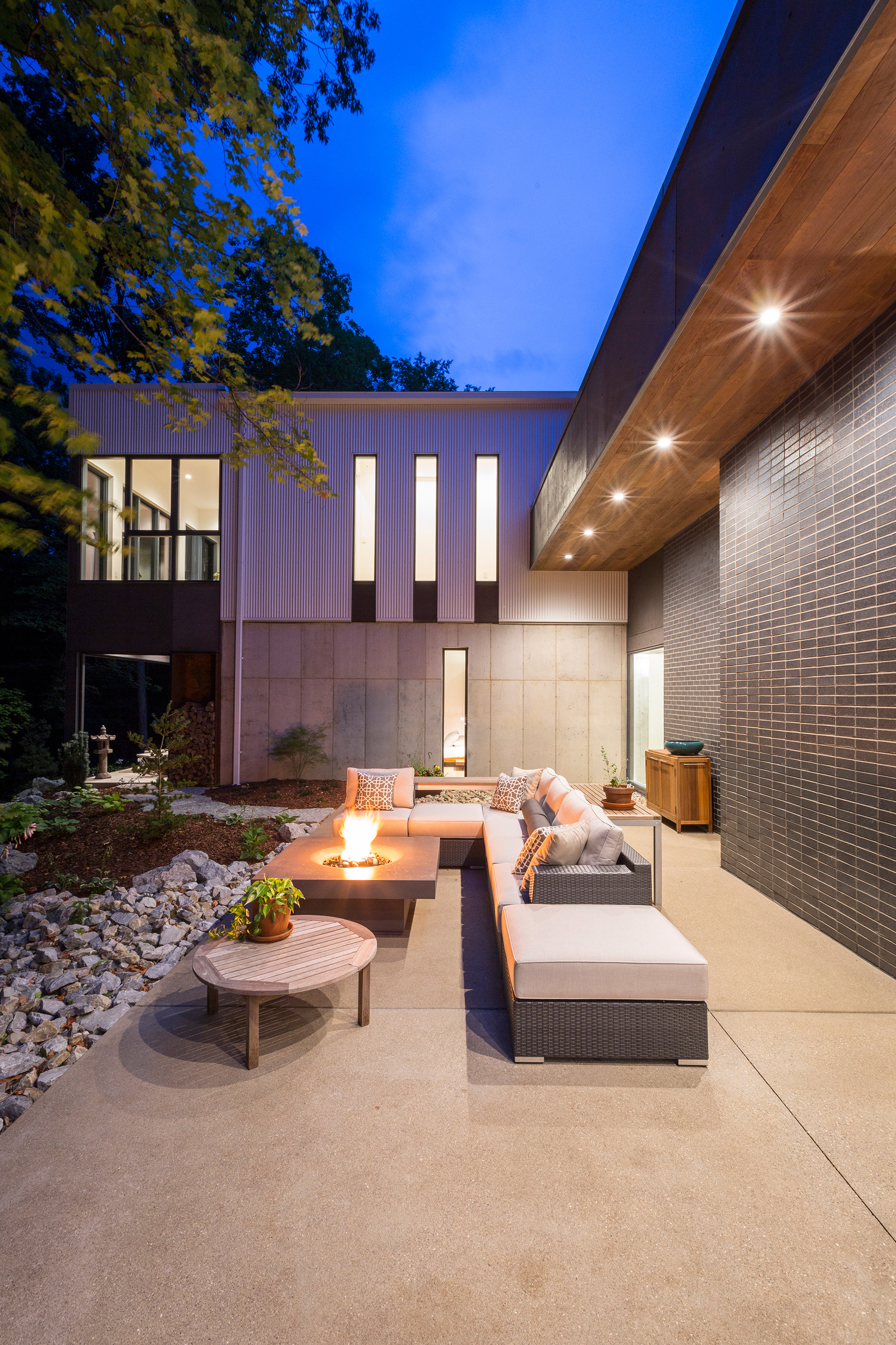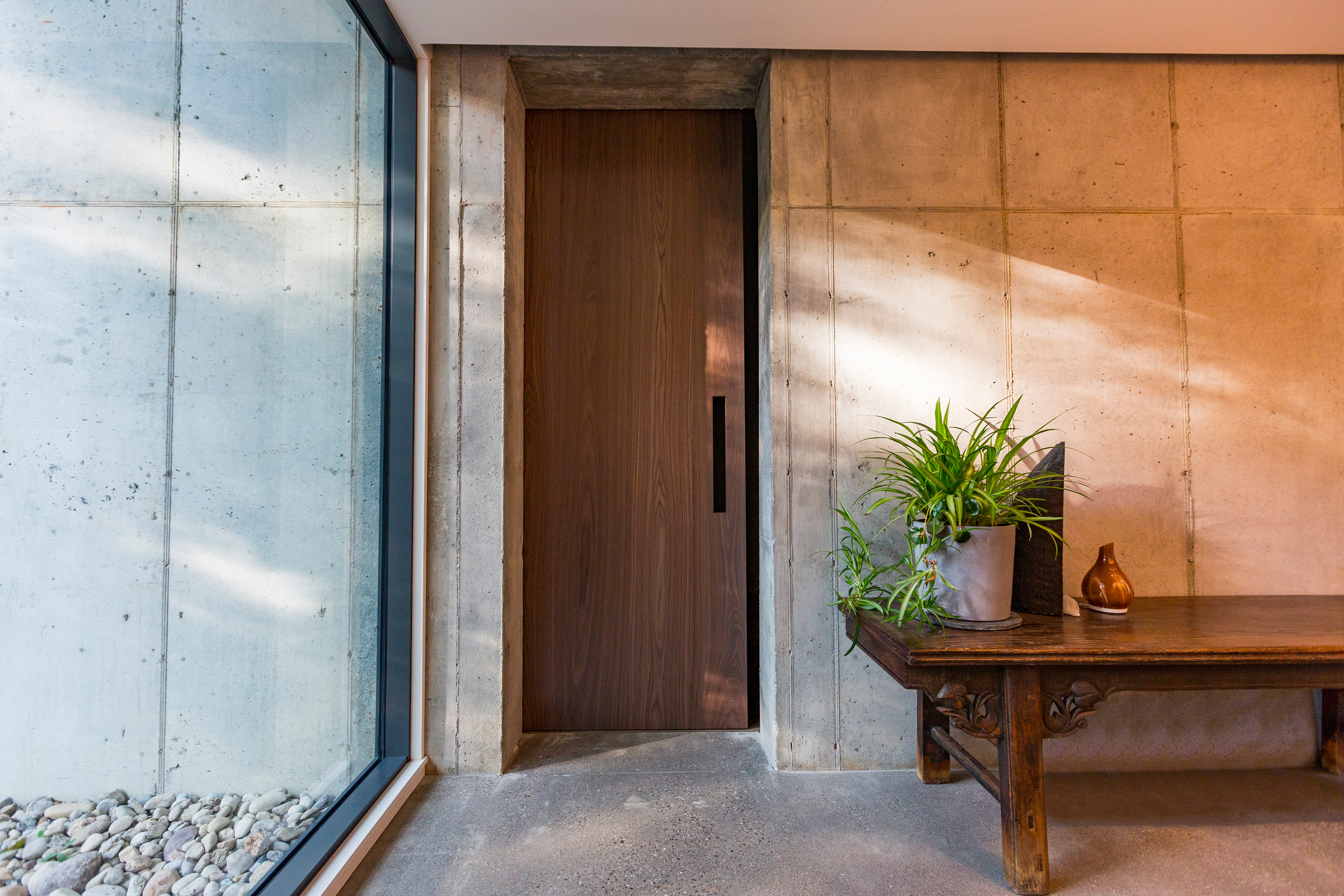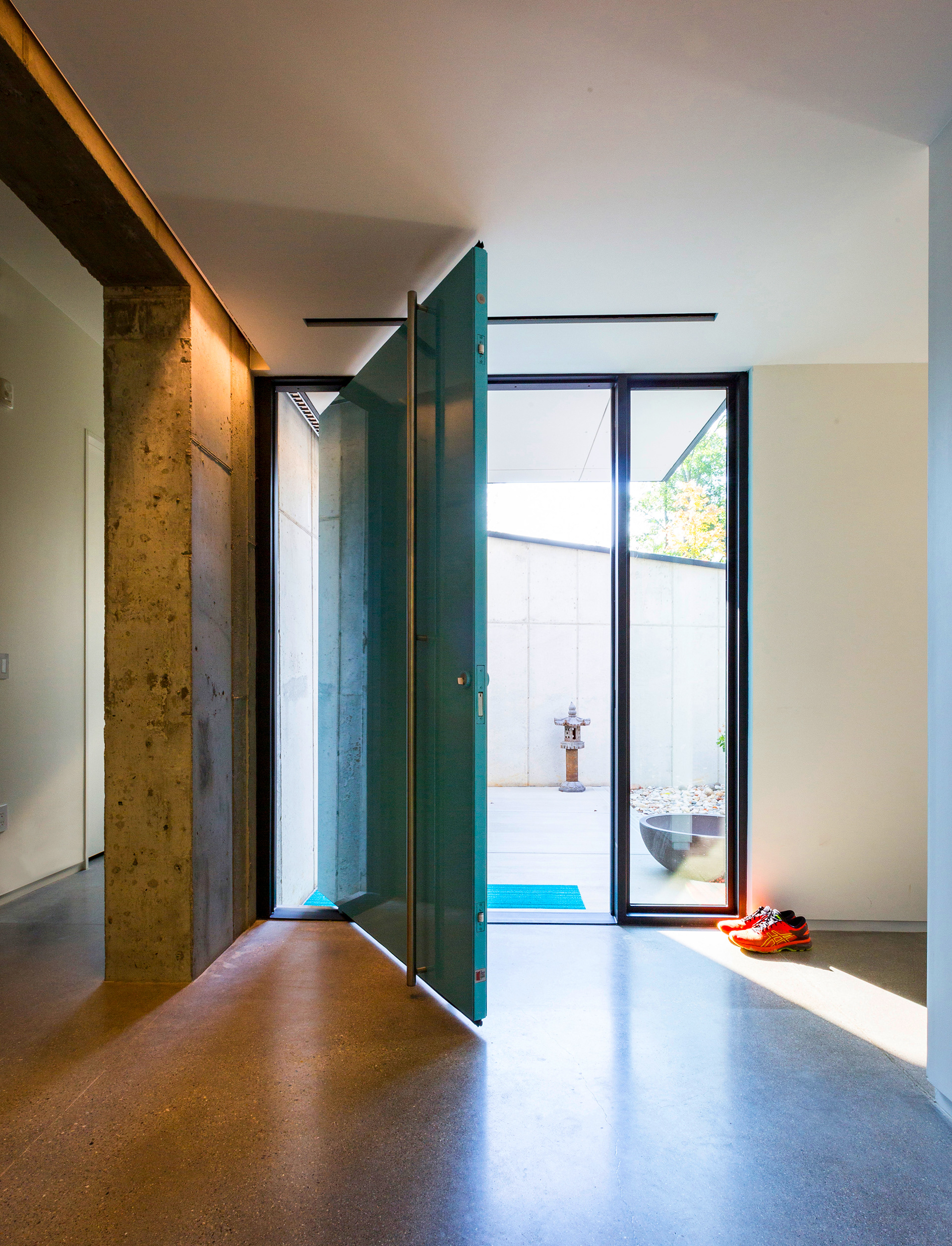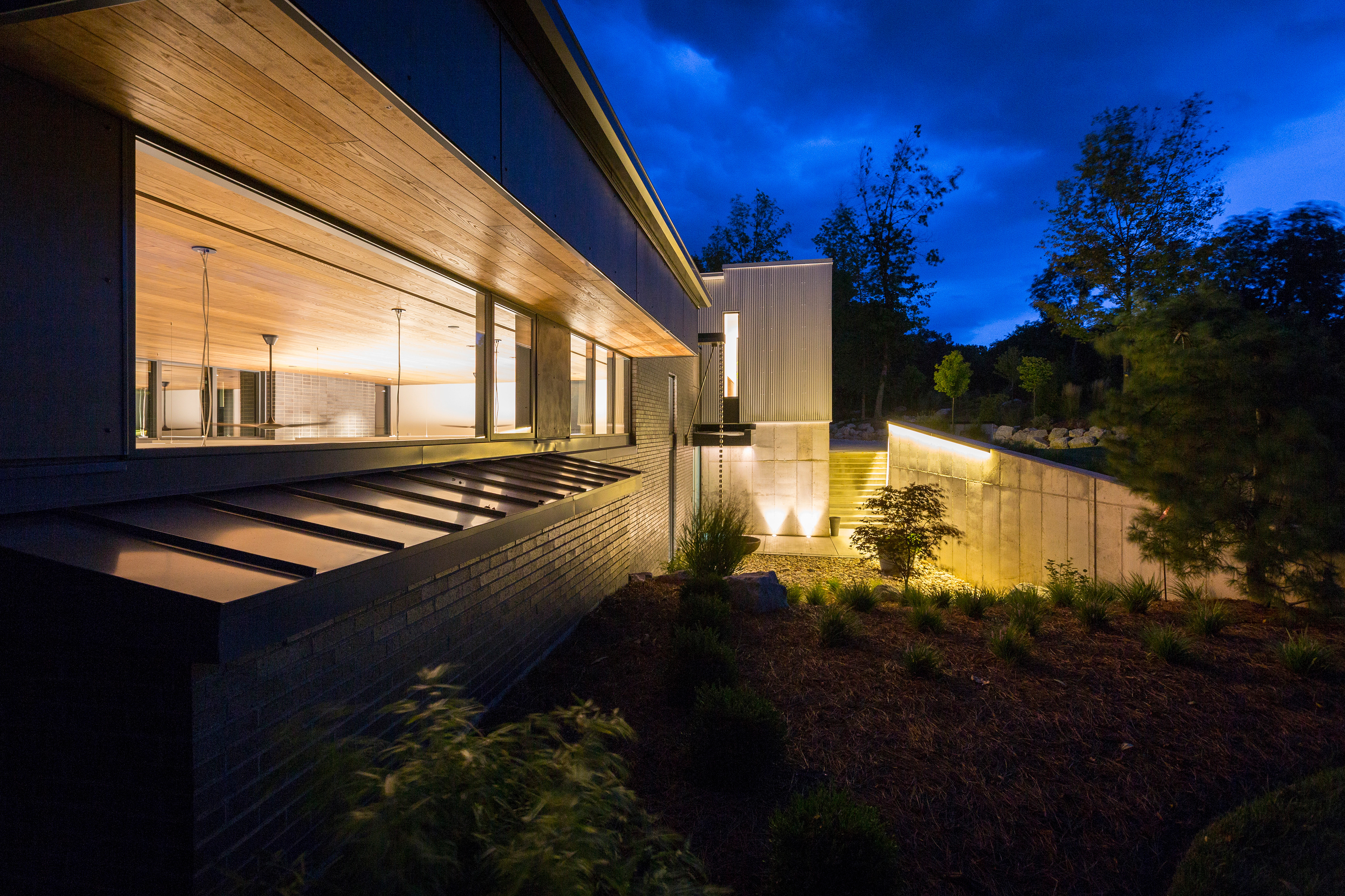 After careful analysis of the site, three overlapping bars were precisely maneuvered to slip between specimen trees. Slight adjustments in position relative to one another allow the bars to signal entry and enclose a walk-out private terrace. The house works with the natural grade of the site, simultaneously settling into and being born out of the site. A clear distinction is made between public function areas and private function areas, as the experience of the house moves from grounded to transcendental.