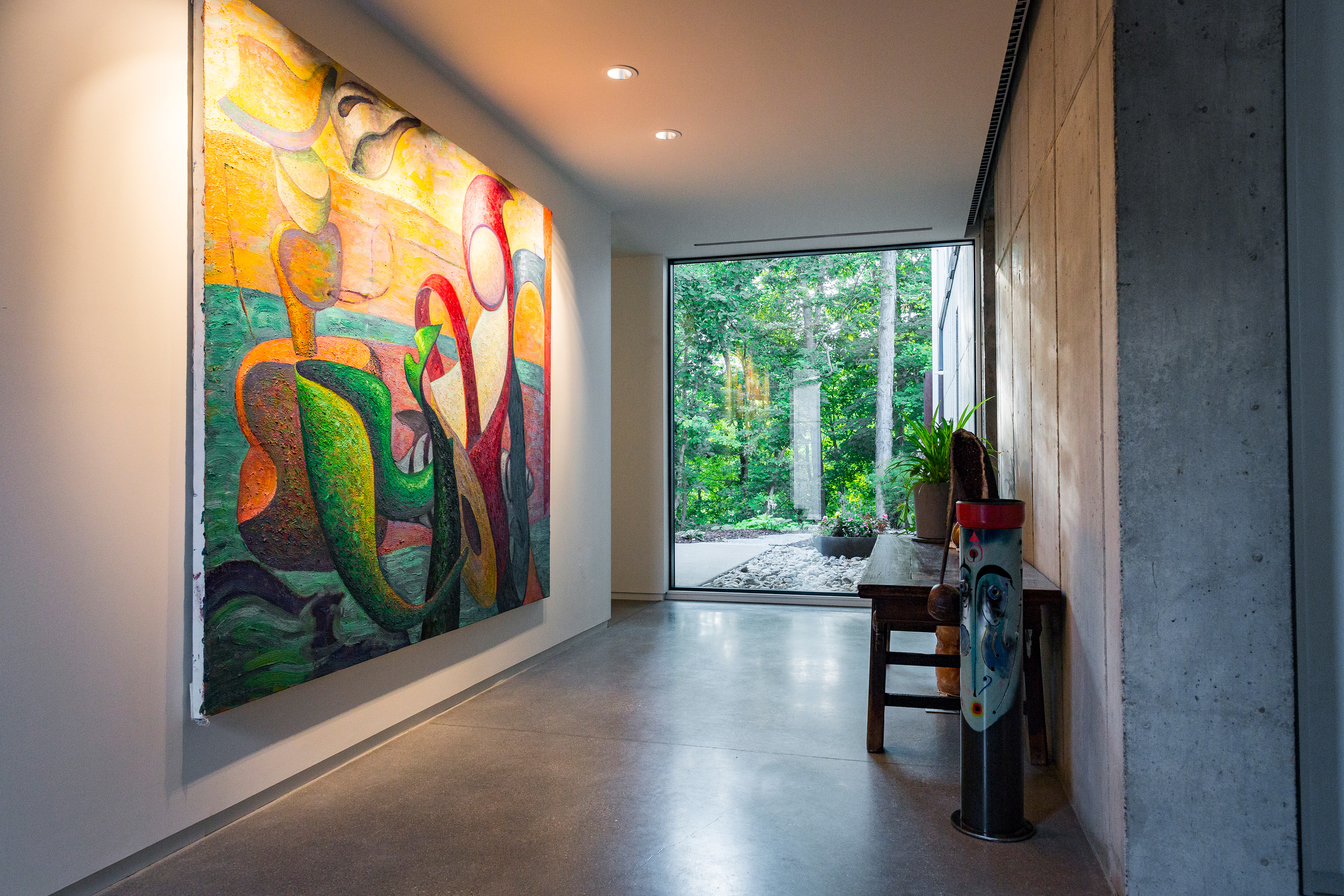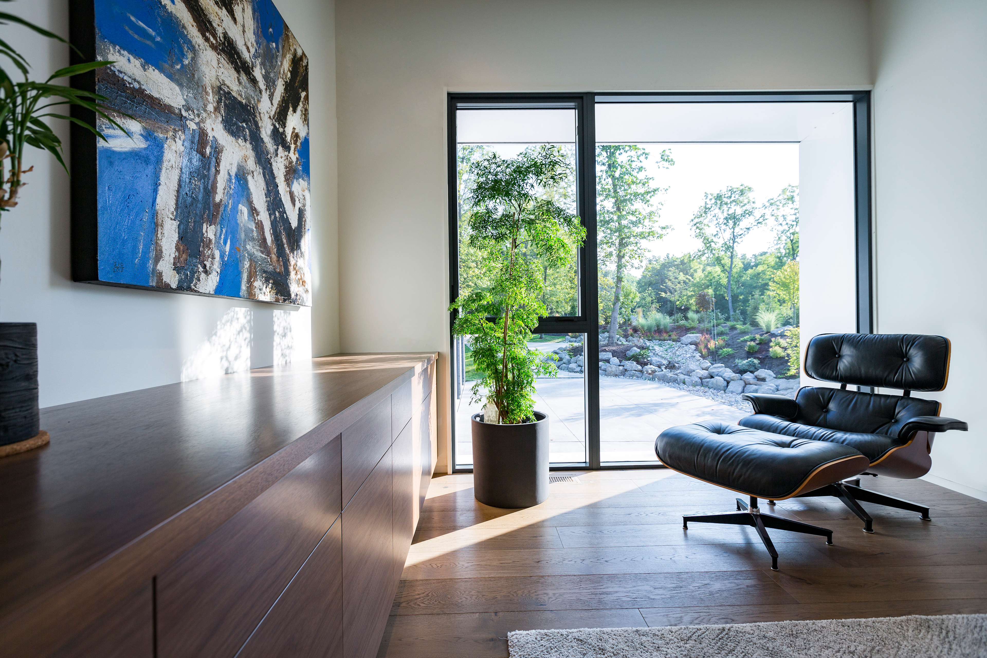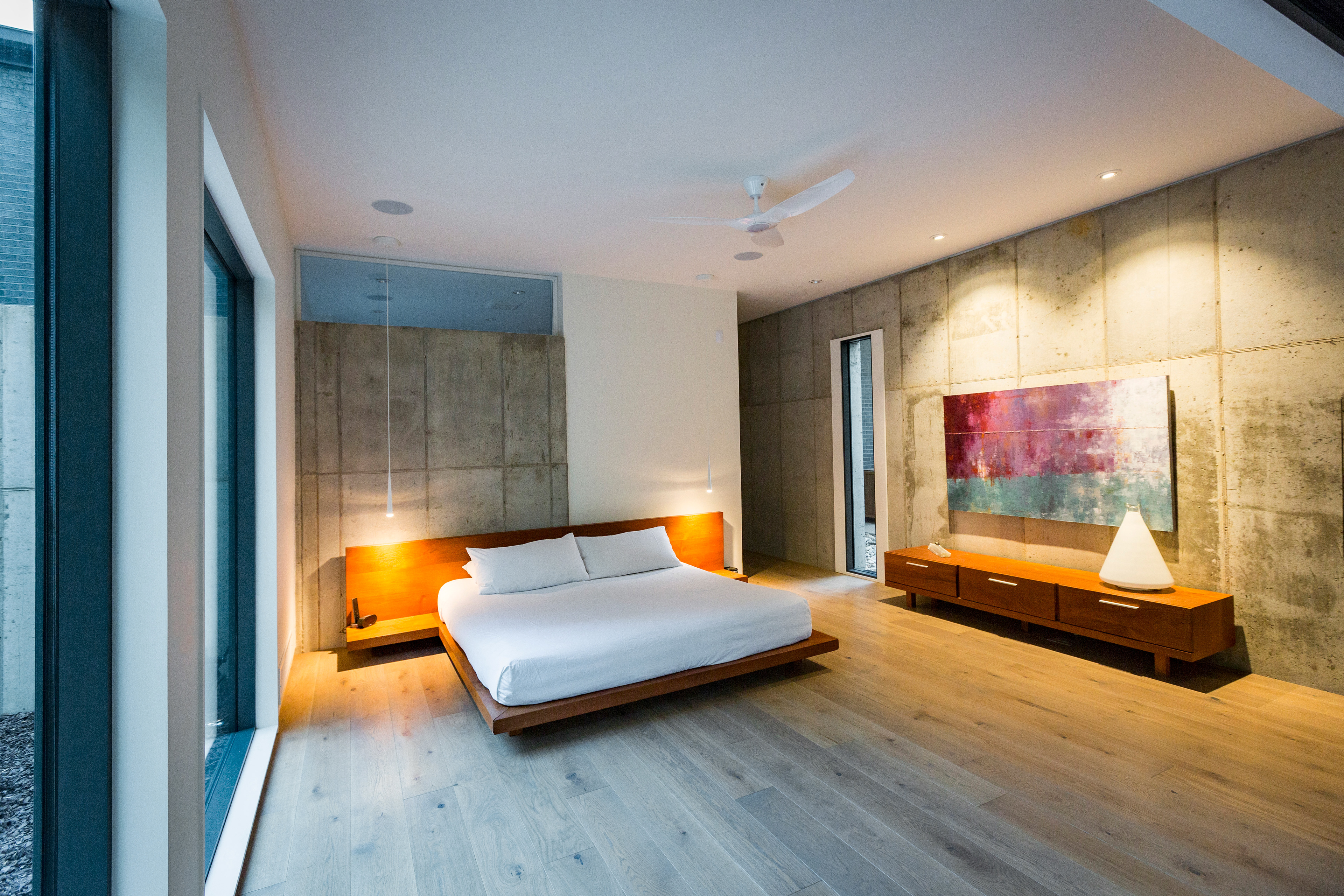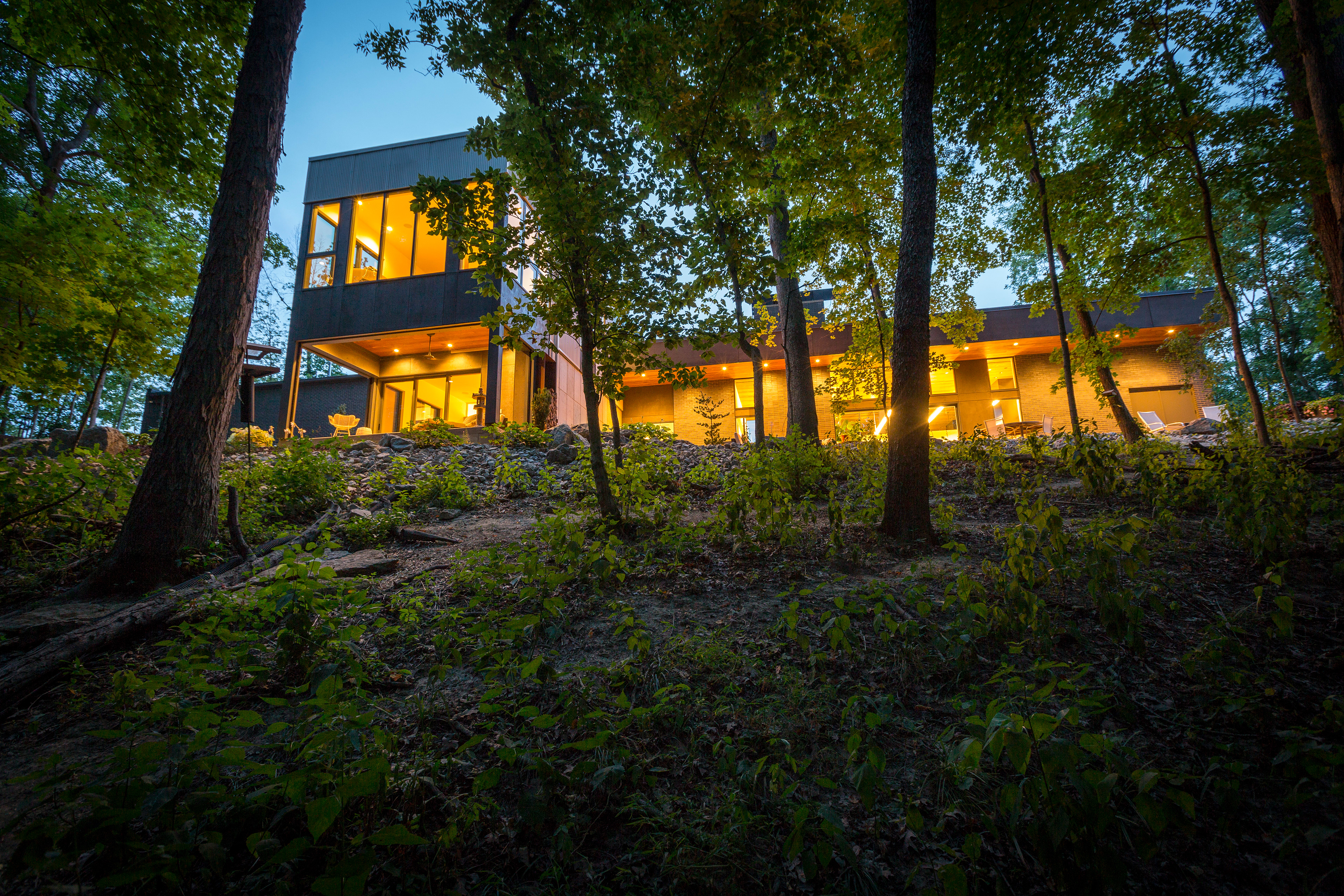 After careful analysis of the site, three overlapping bars were precisely maneuvered to slip between specimen trees. Slight adjustments in position relative to one another allow the bars to signal entry and enclose a walk-out private terrace. The house works with the natural grade of the site, simultaneously settling into and being born out of the site. A clear distinction is made between public function areas and private function areas, as the experience of the house moves from grounded to transcendental.