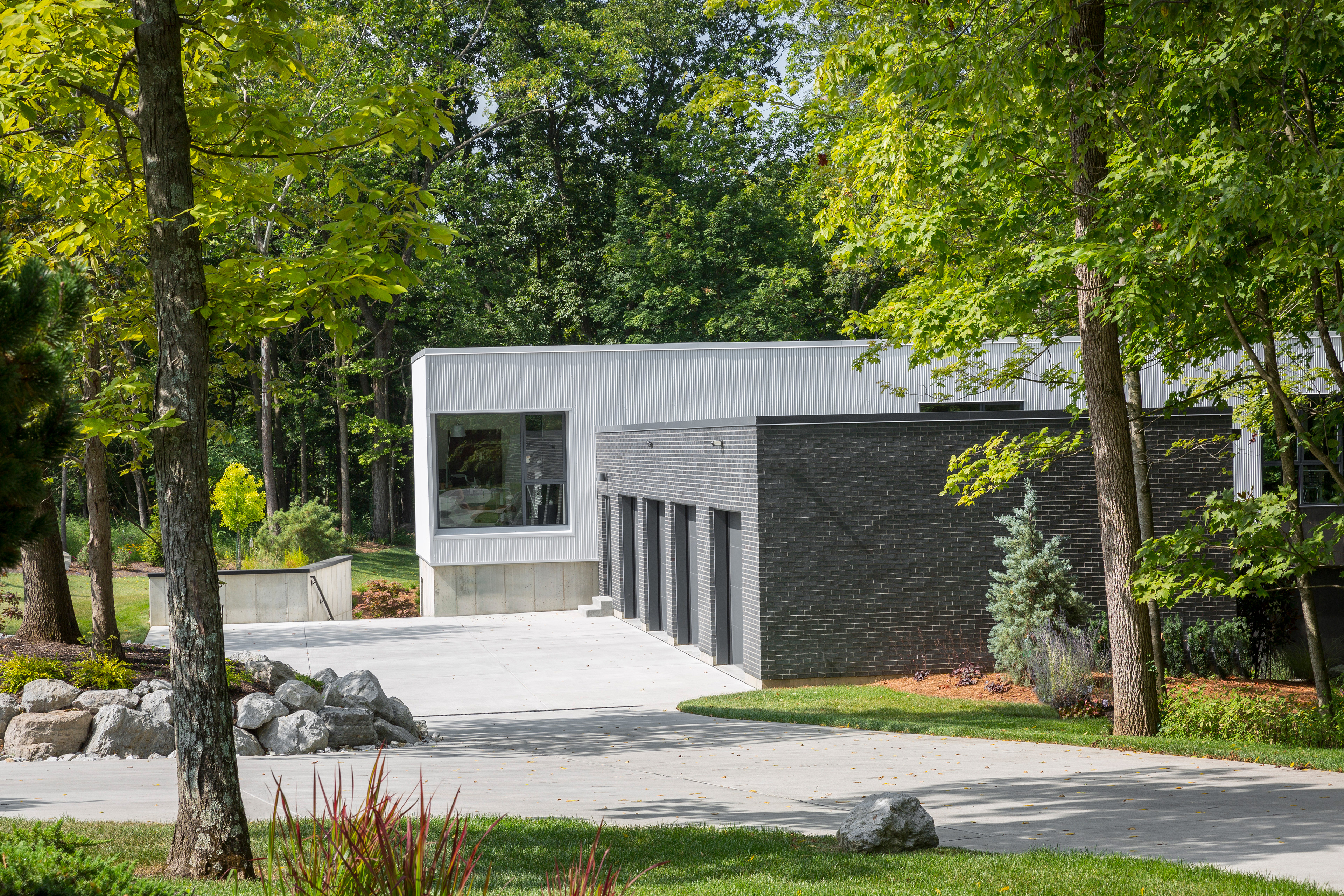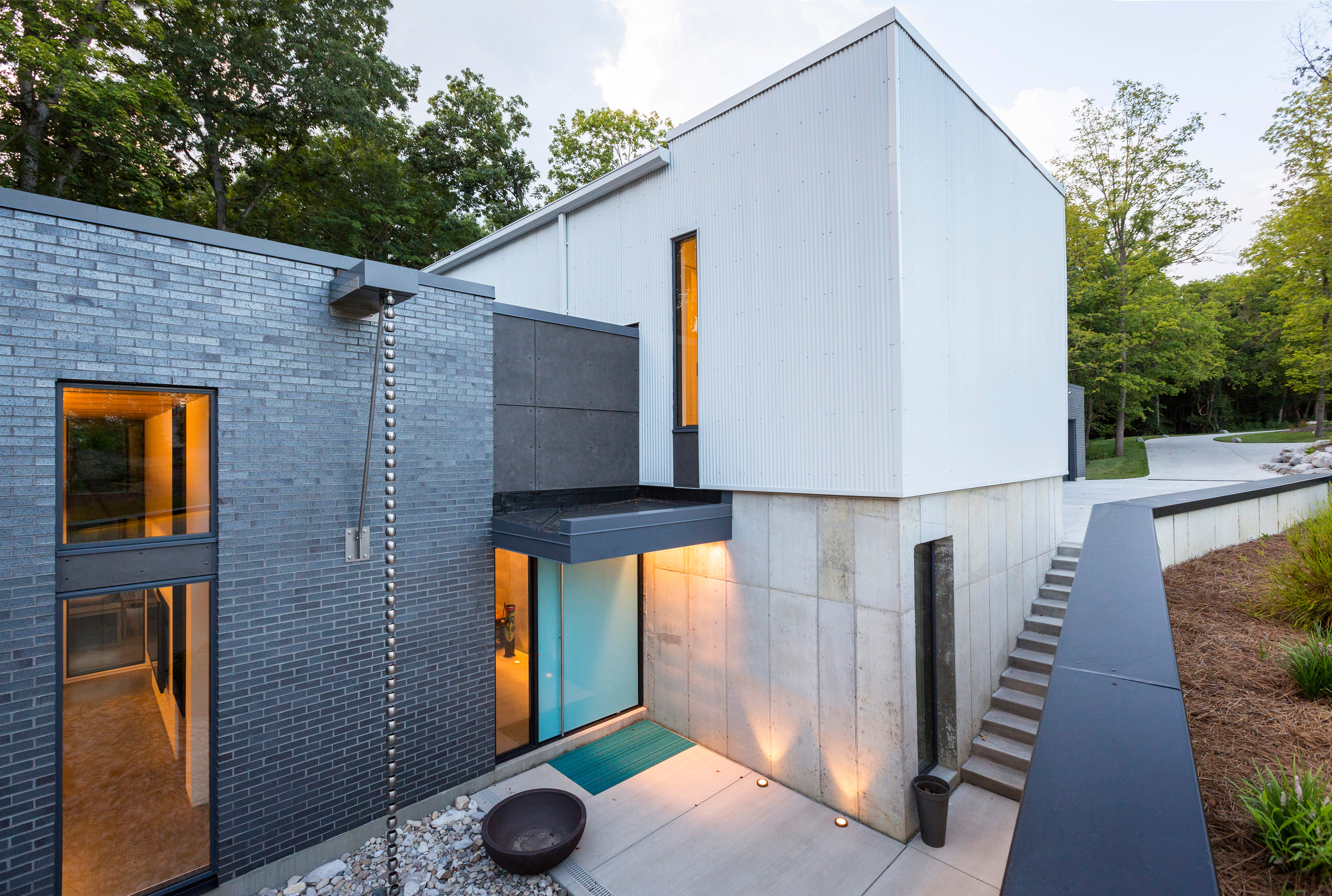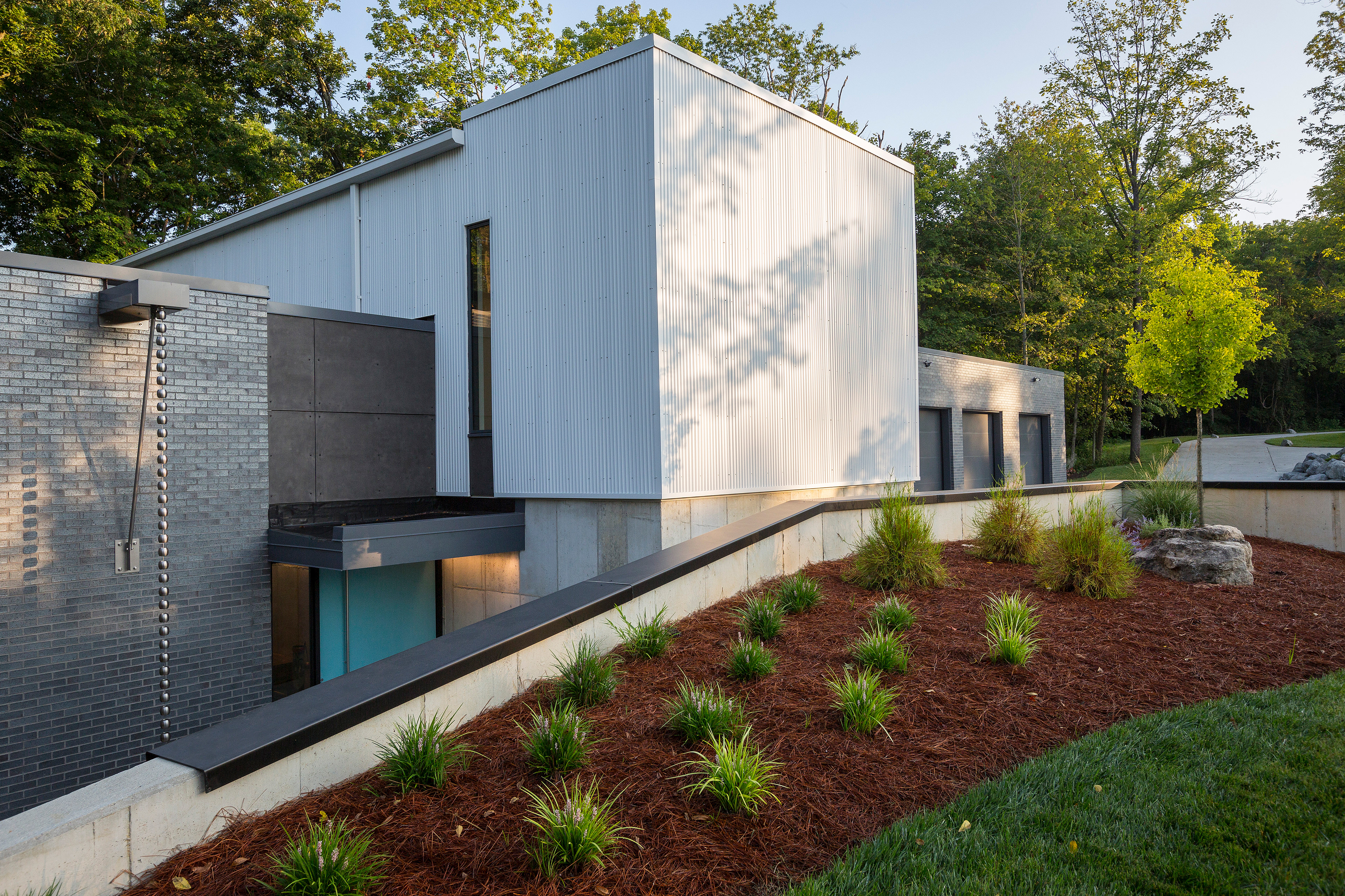 After many years of travel, work abroad, and life in a suburban home, a couple desired a simple modern home that would live more like a retreat. They sought a new grounding attuned to the earth and a place of solitude suitable for their animals and farm-to-table lifestyle. In this pursuit, they purchased a hillside lot overlooking a wooded ravine.